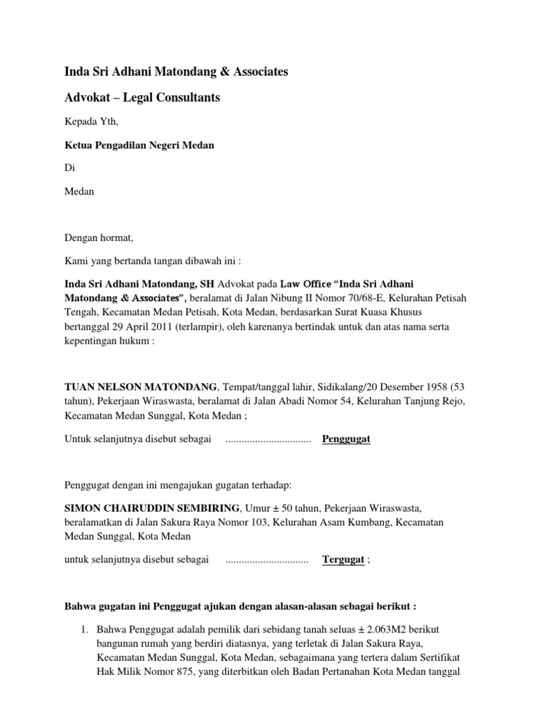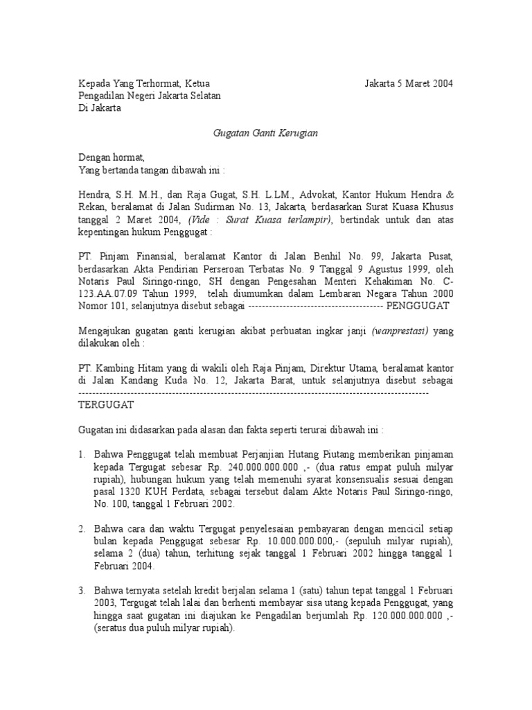 Contoh Surat Gugatan Perdata Pdf from imgv2-2-f.scribdassets.com Wawan sentosa s h advokat berkantor di jalan perintis kemerdekaan no. Di dalam perkara perdata wanprestasi dan ganti rugi. Penyelesaian gugatan wanprestasi dalam sengketa ekonomi. Jalan cut mutia nomor 23 banda aceh. Eksepsi (exceptio) mempunyai arti pengecualian. Replik penggugat terhadap eksepsi dan jawaban tergugat i. Posted by young lawyer in hukum acara perdata. Contoh hukum perdata diantaranya adalah: